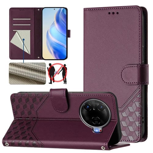 Funda de Cuero Rfid con Relieve en Panal para Tecno Camon 30 Pro 5G (Violeta)