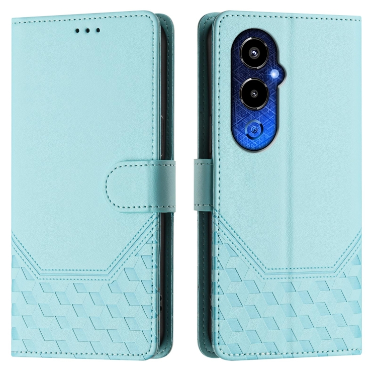 Funda de Cuero Rfid con Relieve en Panal para Tecno Pova 4 Pro 4G (Verde Menta)