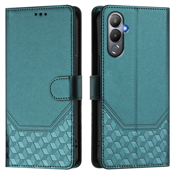 Funda de Cuero Rfid con Relieve en Panal para Tecno Pova 4 (Verde Pavo Real)
