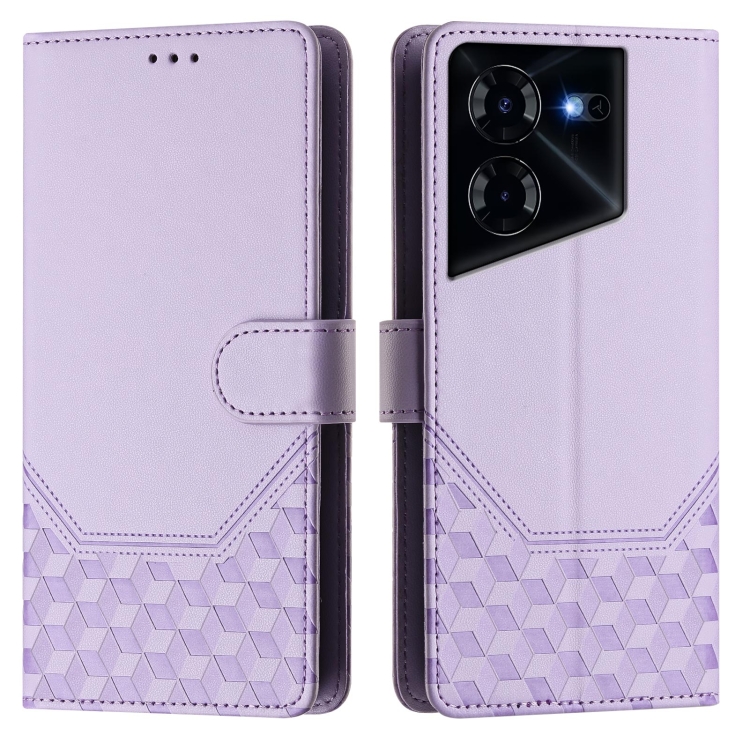 Funda de Cuero Rfid con Relieve en Panal para Tecno Pova 5 Pro 5G (Morado Claro)