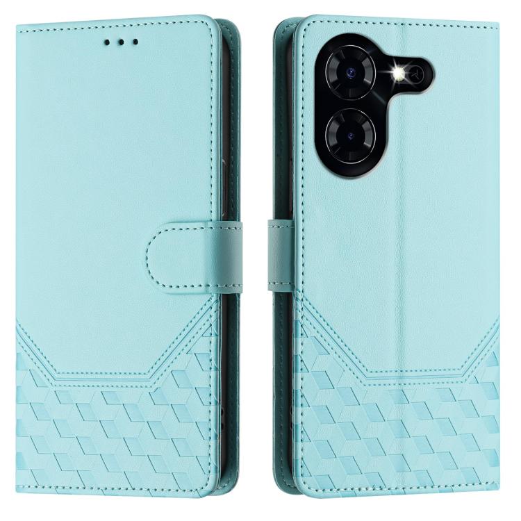 Funda de Cuero Rfid con Relieve en Panal para Tecno Pova 5 (Verde Menta)