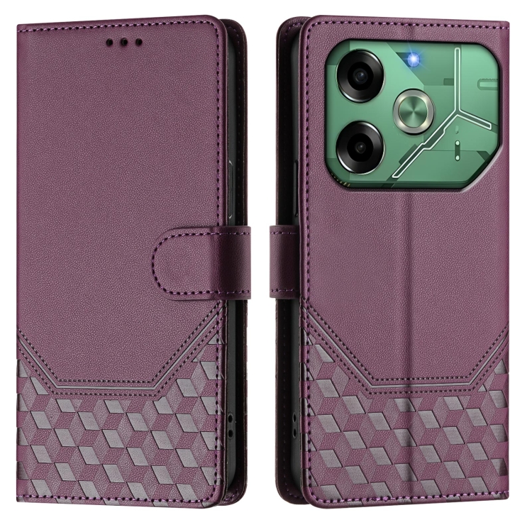 Funda de Cuero Rfid con Relieve en Panal para Tecno Pova 6 4G (Violeta)
