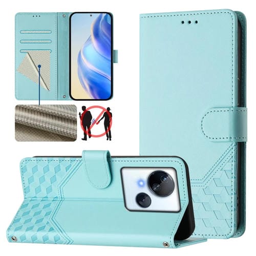 Funda de Cuero Rfid con Relieve en Panal para Tecno Spark 10 5G (Verde Menta)