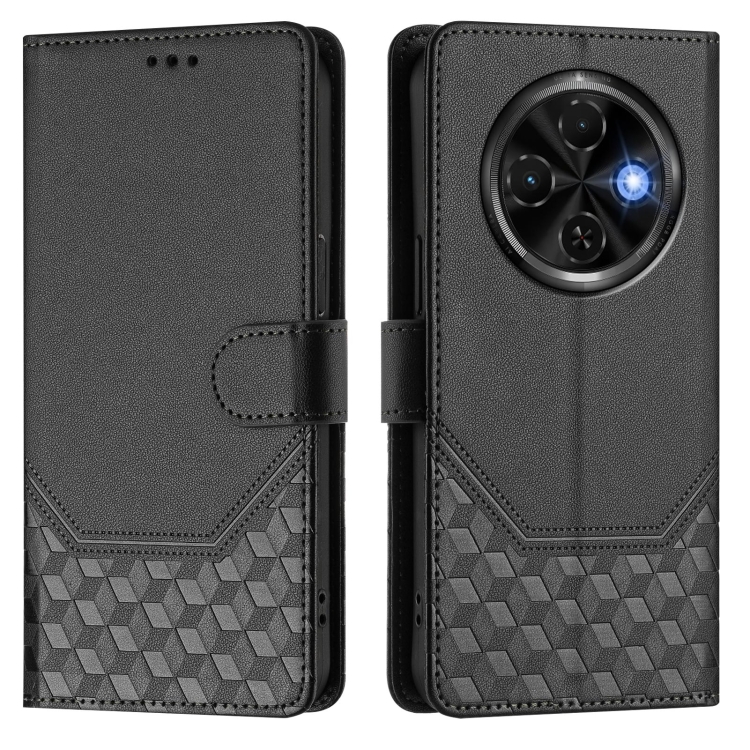 Funda de Cuero Rfid con Relieve en Panal para Tecno Spark 30C (Negra)