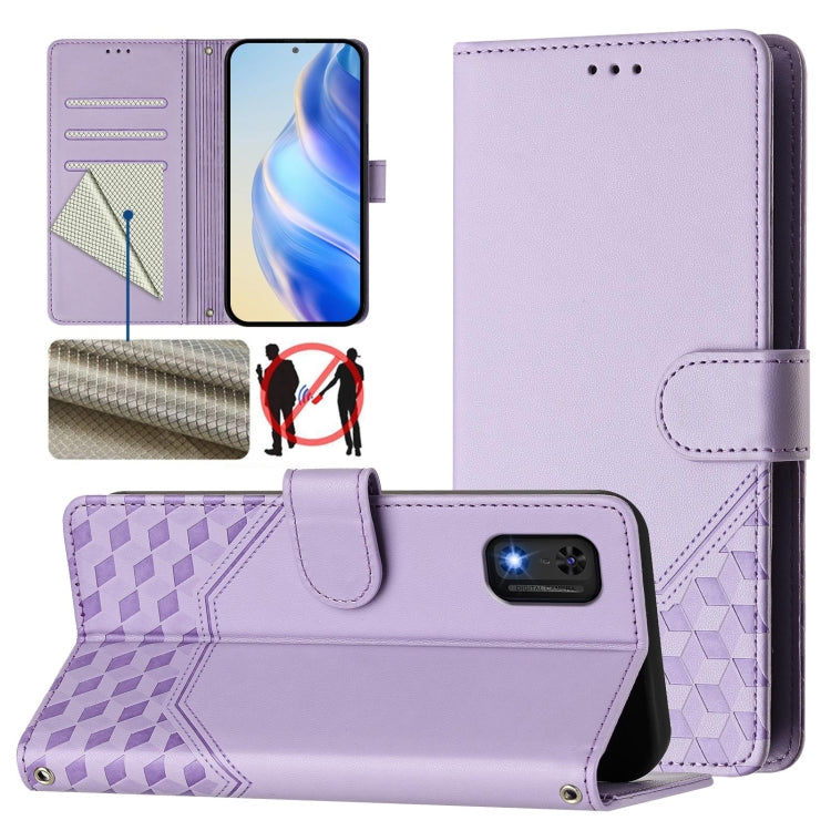 Funda de Cuero Rfid con Relieve en Panal para Teléfono Itel A23 Pro/A17 (Morado Claro)