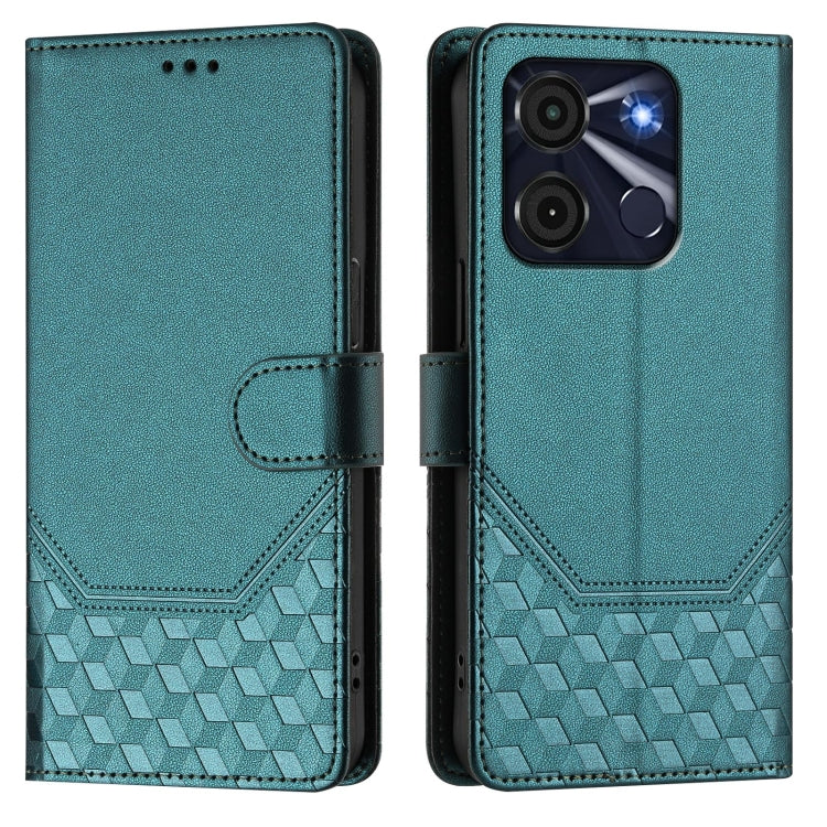 Funda de Cuero Rfid con Relieve en Panal para Teléfono Itel A60/A60S (Verde Pavo Real)