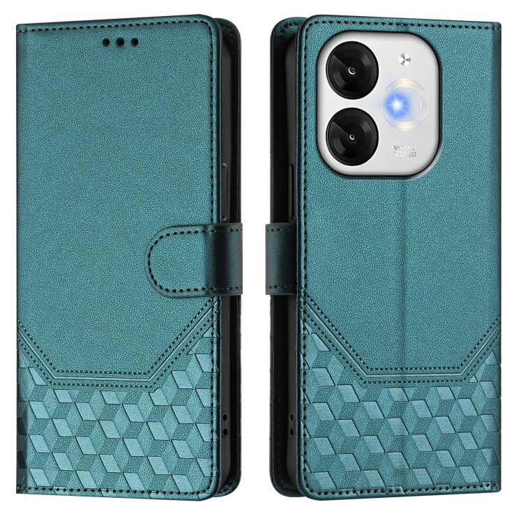 Funda de Cuero Rfid con Relieve en Panal para Teléfono Itel A80 4G (Verde Pavo Real)