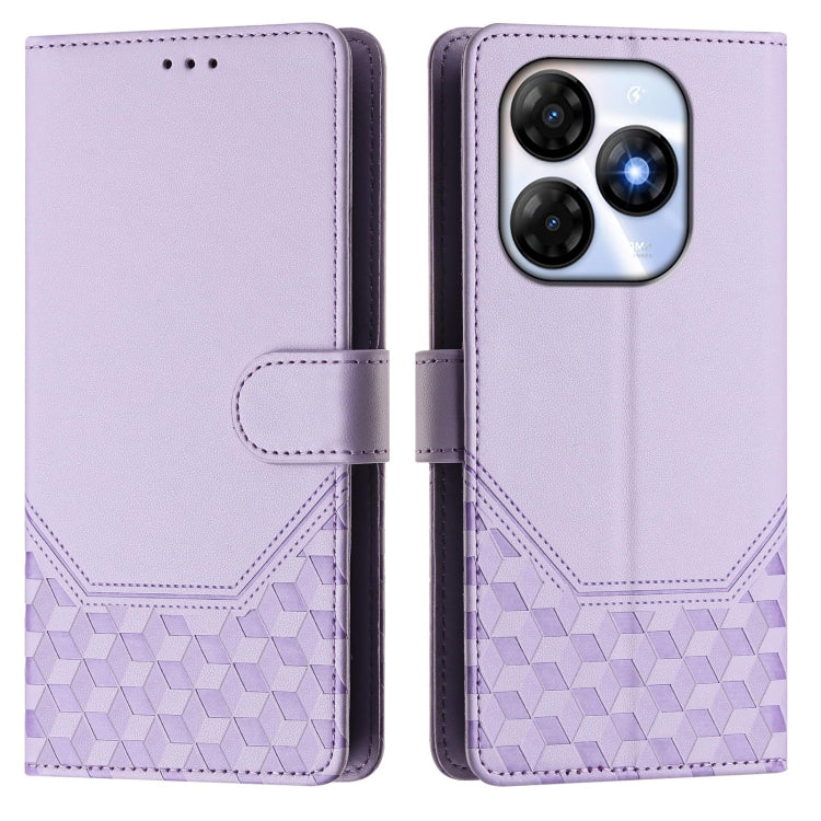 Funda de Cuero RFID con Relieve en Panal para Itel P55 4G e Infinix Smart 8 (Morado Claro)