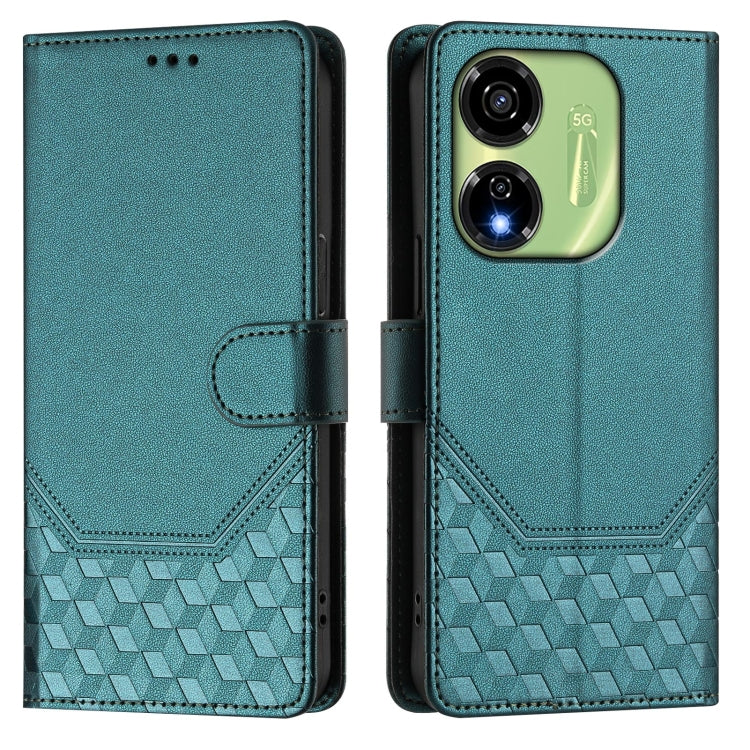 Funda de Cuero Rfid con Relieve en Panal para Teléfono Itel P55 5G (Verde Pavo Real)