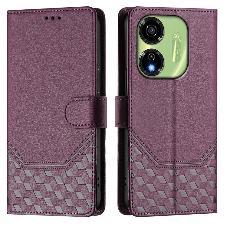 Funda de Cuero Rfid con Relieve en Panal para Teléfono Itel P55 5G (Violeta)