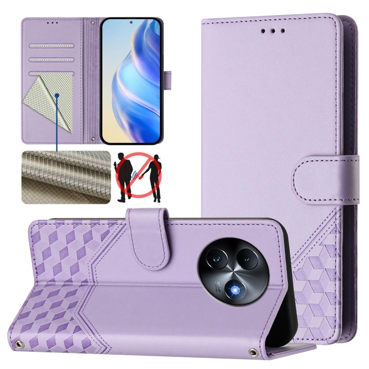Funda de Cuero Rfid con Relieve en Panal para Teléfono Itel S24 (Morado Claro)