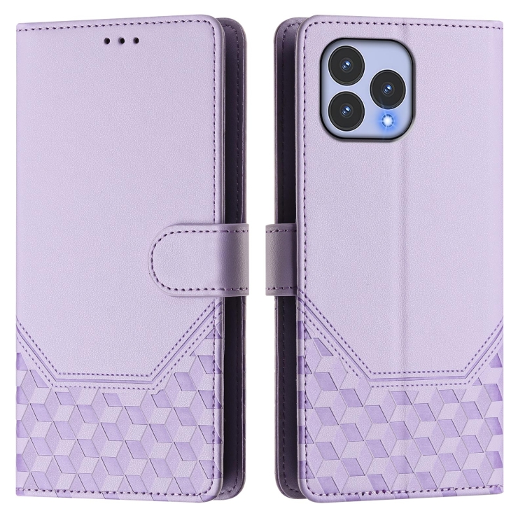 Funda de Cuero Rfid con Relieve en Panal para Teléfono Wiko T60 (Morado Claro)
