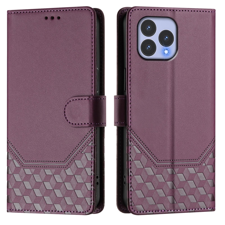 Funda de Cuero Rfid con Relieve en Panal para Teléfono Wiko T60 (Violeta)