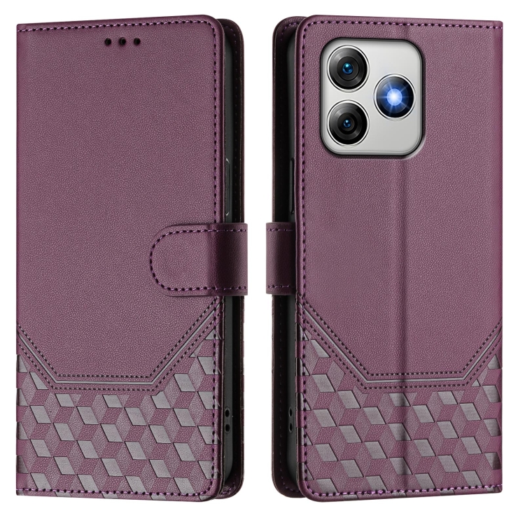 Funda de Cuero Rfid con Relieve en Panal para Ulefone Note 18 Ultra (Violeta)