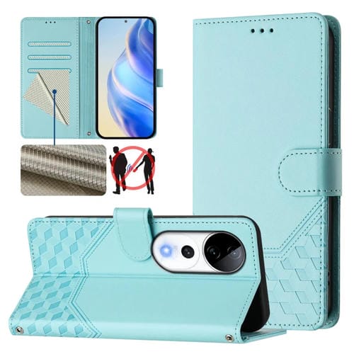 Funda de Cuero Rfid con Relieve En Panal para Vivo S19 Pro (Verde Menta)