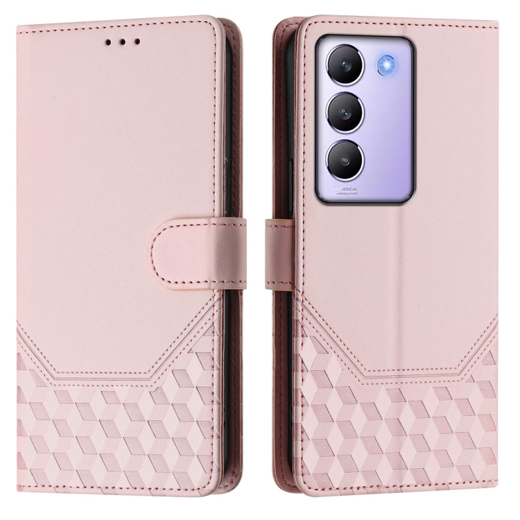 Funda de Cuero Rfid con Relieve En Panal para Vivo Y100 Idn/T3 5G Idn (Rosa)