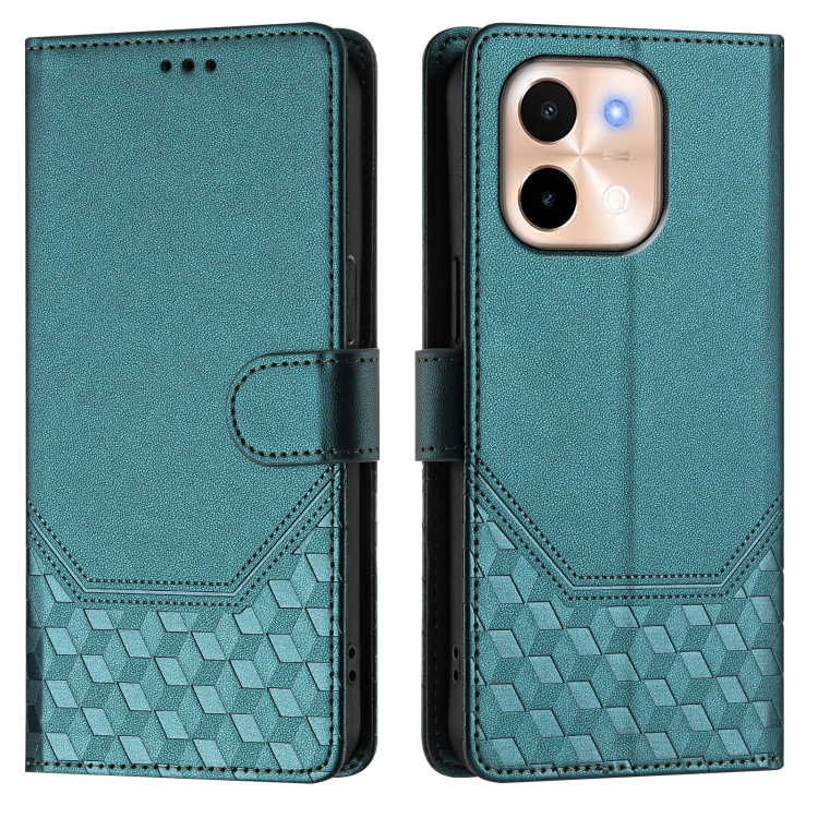 Funda de Cuero Rfid con Relieve En Panal para Vivo Y28 4G (Verde Pavo Real)