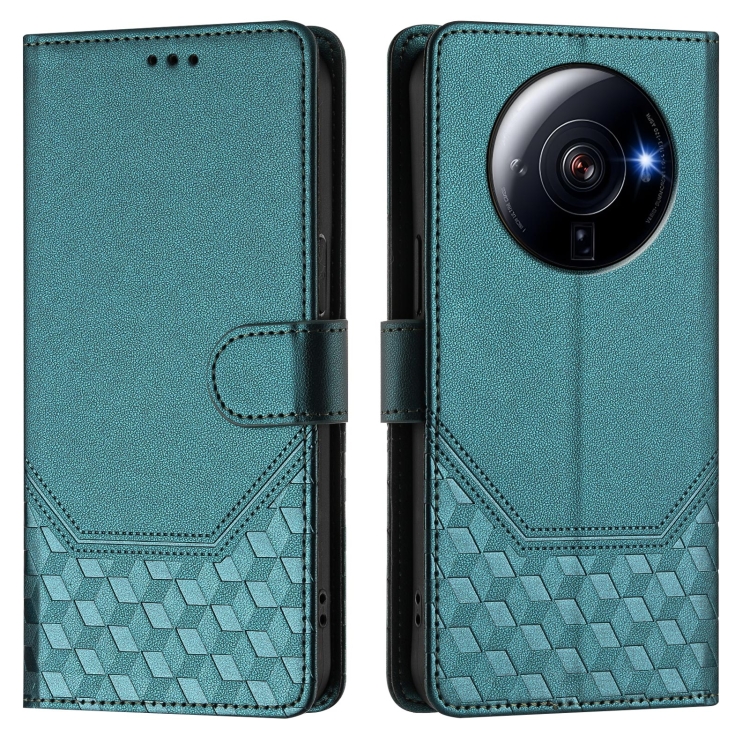 Funda de Cuero Rfid con Relieve En Panal para Xiaomi 12S Ultra (Verde Pavo Real)