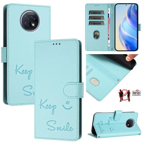 Funda de Cuero Rfid con Relieve Global Smile para Redmi Note 9T (Verde Menta)