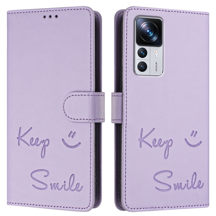 Funda de Cuero Rfid con Relieve Smile para Redmi K50 Ultra (Morado Claro)
