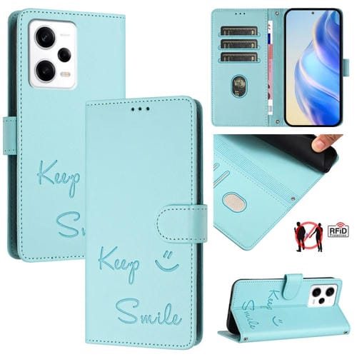 Funda de Cuero Rfid con Relieve Smile para Redmi Note 12 Pro (Verde Menta)