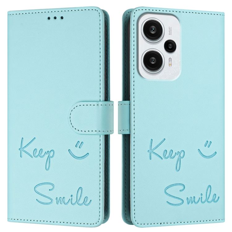 Funda de Cuero Rfid con Relieve Smile para Redmi Note 12 Turbo (Verde Menta)
