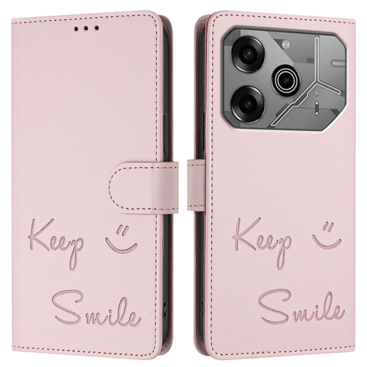 Funda de Cuero Rfid con Relieve Smile para Tecno Pova 6 Neo (Rosa)