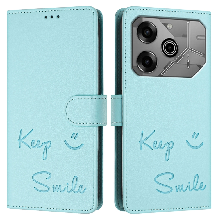 Funda de Cuero Rfid con Relieve Smile para Tecno Pova 6 Neo (Verde Menta)