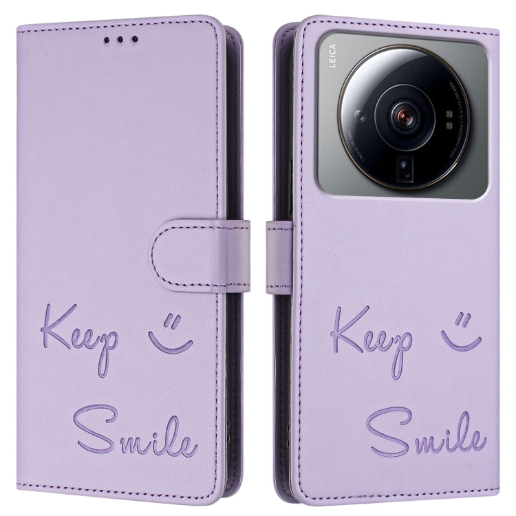 Funda de Cuero Rfid con Relieve Smile para Xiaomi 12S Ultra (Morado Claro)