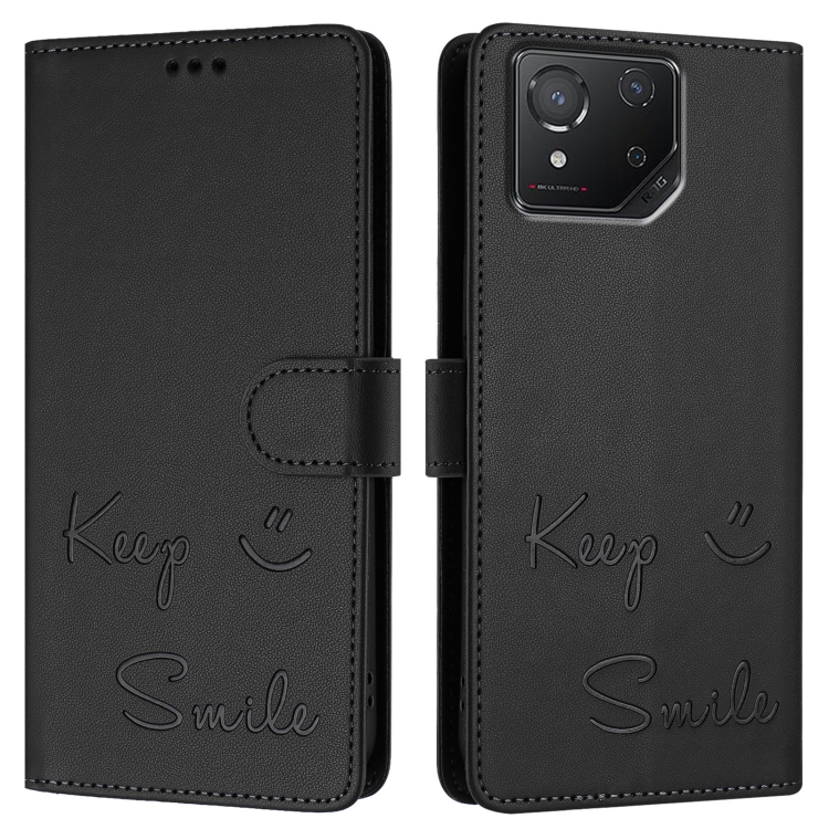 Funda de Cuero Rfid con Relieve Sonriente para Asus Rog Phone 8/8 Pro (Negra)