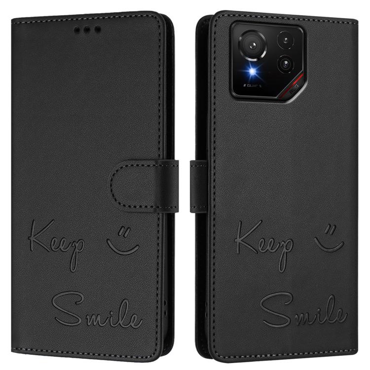 Funda de Cuero Rfid con Relieve Sonriente para Asus Rog Phone 9/9 Pro (Negra)