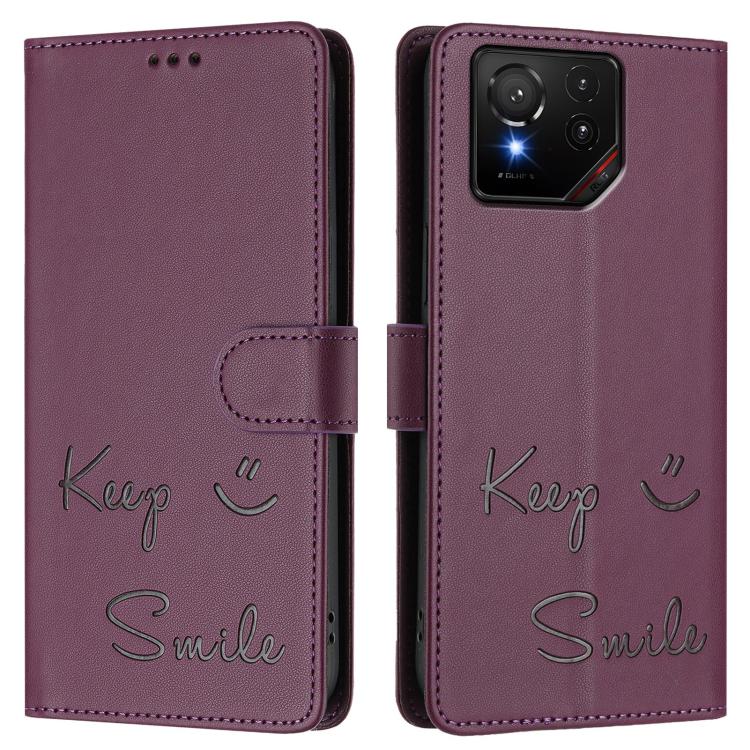 Funda de Cuero Rfid con Relieve Sonriente para Asus Rog Phone 9/9 Pro (Violeta)
