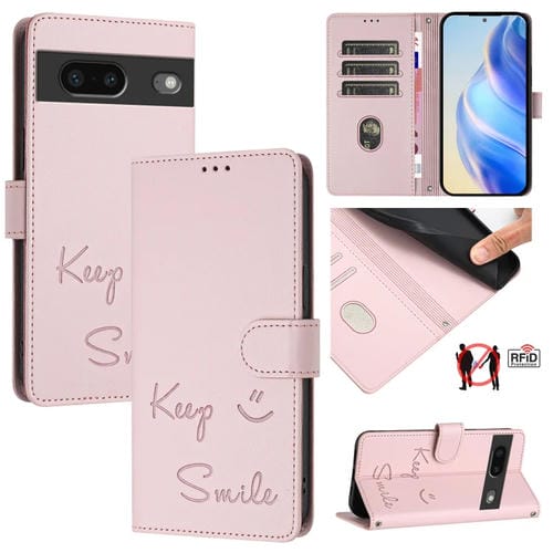 Funda de Cuero Rfid con Relieve Sonriente para Google Pixel 7 (Rosa)