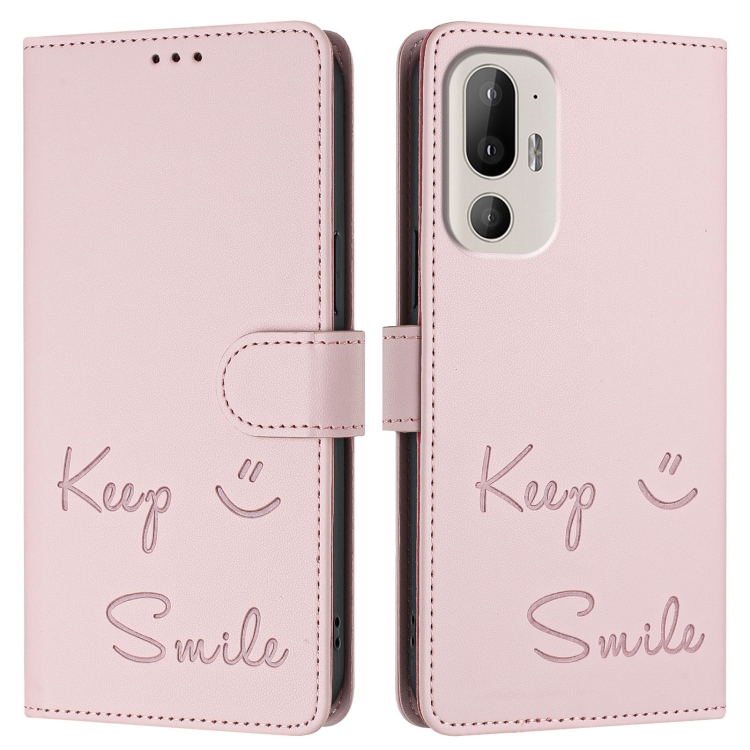 Funda de Cuero Rfid con Relieve Sonriente para HTC U24 Pro (Rosa)