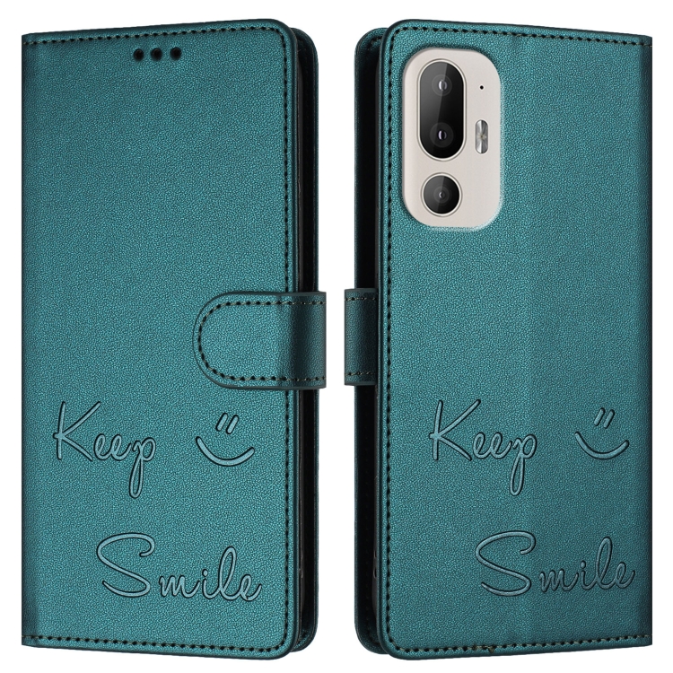 Funda de Cuero RFID con Relieve Sonriente para HTC U24 Pro (Verde Pavo Real)