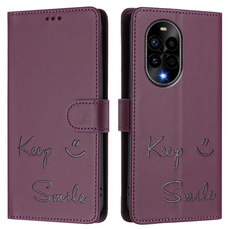 Funda de Cuero Rfid con Relieve Sonriente para Huawei Nova 13 Pro (Violeta)