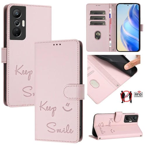 Funda Cuero Rfid con Relieve Sonriente para Infinix Hot 20S y Hot 20 Pro (Rosa)
