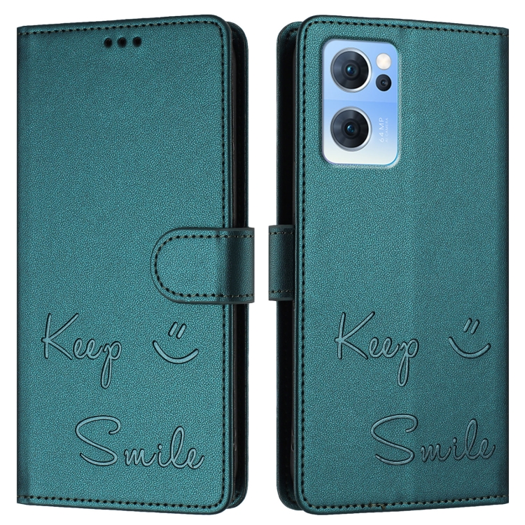 Funda de Cuero Rfid con Relieve Sonriente para Oppo Find X5 Lite (Verde Pavo Real)
