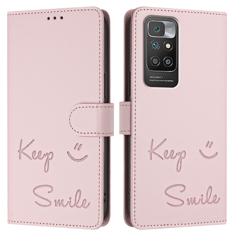 Funda de Cuero Rfid con Relieve Sonriente para Redmi 10 / Redmi 10 2022 (Rosa)