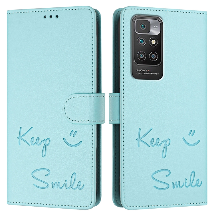 Funda de Cuero Rfid con Relieve Sonriente para Redmi 10 / Redmi 10 2022 (Verde Menta)