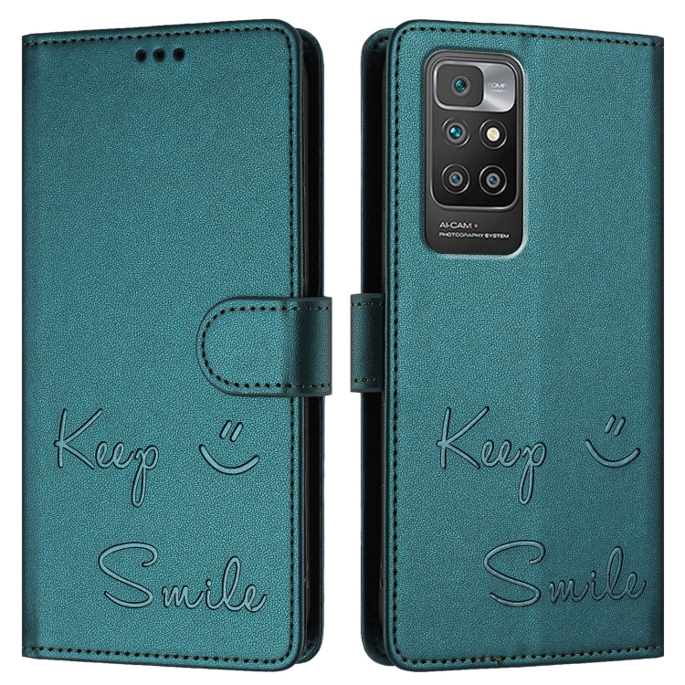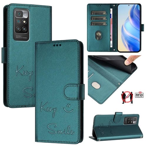 Funda de Cuero Rfid con Relieve Sonriente para Redmi 10/Redmi 10 2022 (Verde Pavo Real)