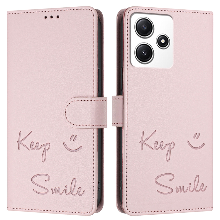 Funda de Cuero Rfid con Relieve Sonriente para Redmi 12 5G Global/India (Rosa)
