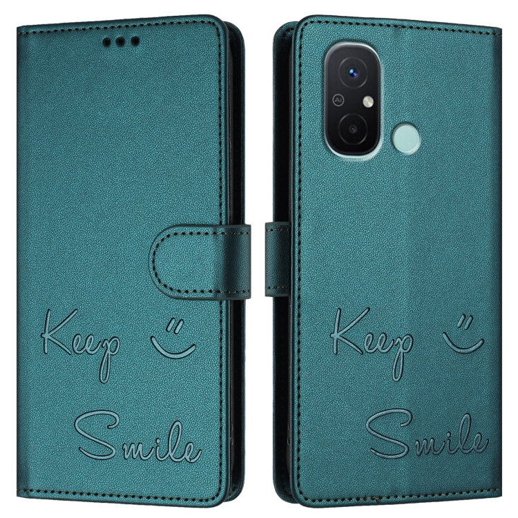 Funda de Cuero Rfid con Relieve Sonriente para Redmi 12C/11A (Verde Pavo Real)