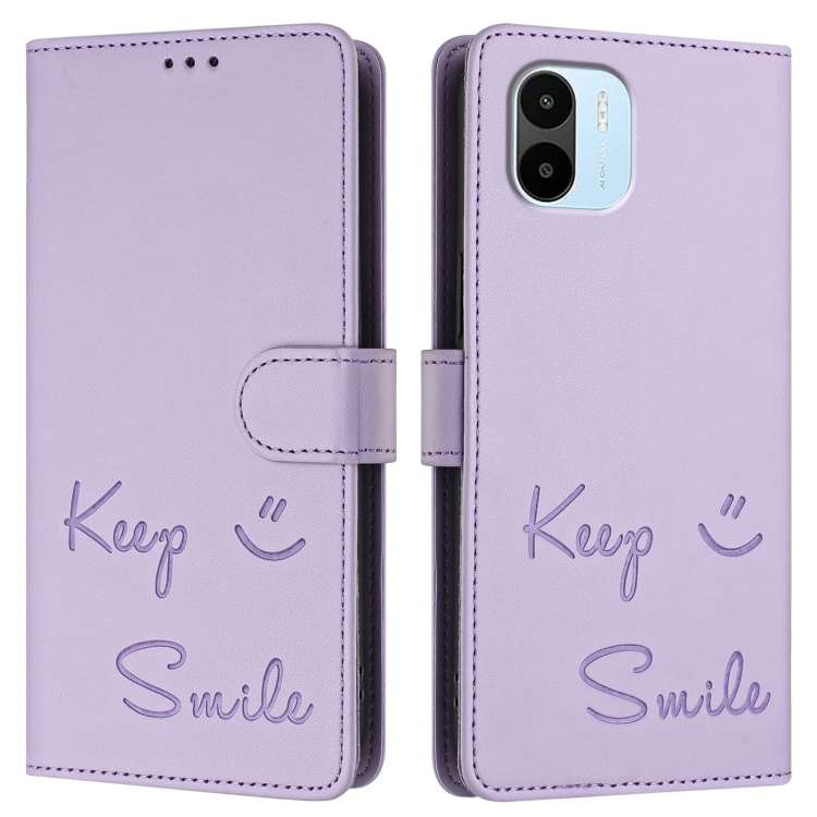 Funda de Cuero Rfid con Relieve Sonriente para Redmi A1/A2 (Morado Claro)