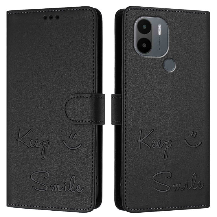 Funda de Cuero Rfid con Relieve Sonriente para Redmi A1+/A2+ (Negra)