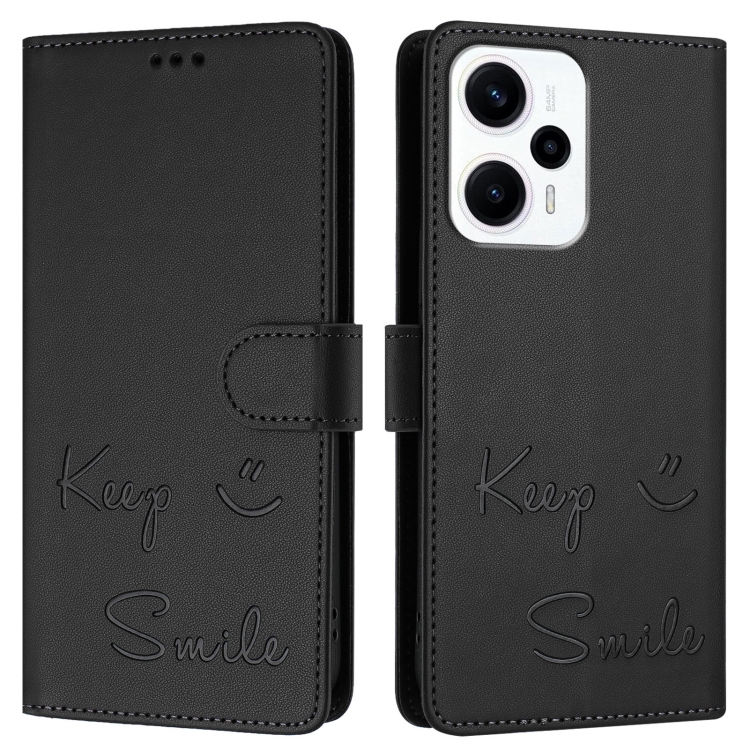 Funda de Cuero Rfid con Relieve Sonriente para Redmi K50I (Negra)