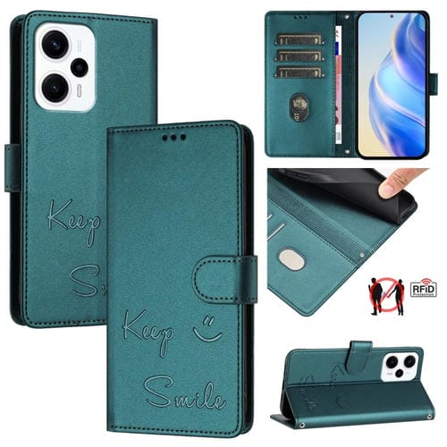 Funda de Cuero Rfid con Relieve Sonriente para Redmi K50I (Verde Pavo Real)
