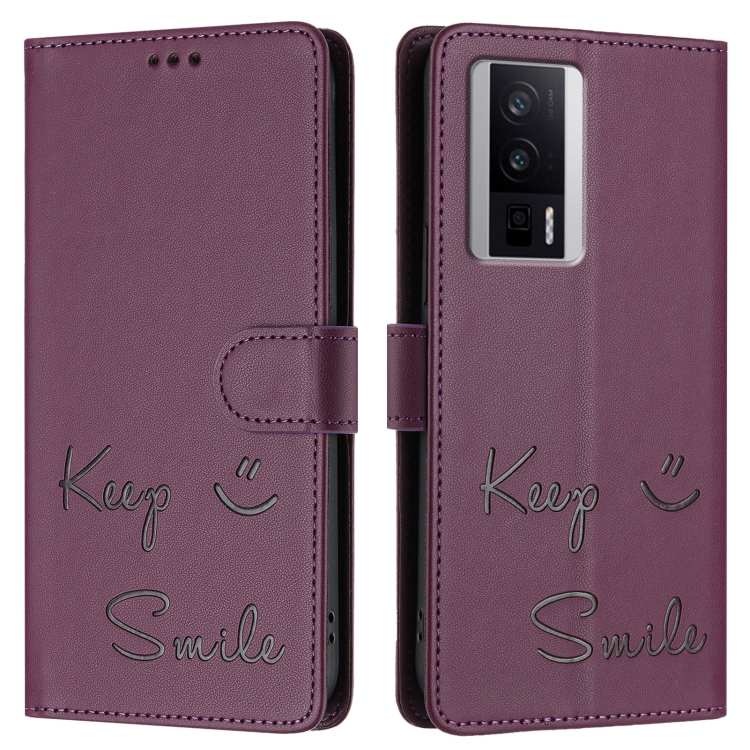 Funda de Cuero Rfid con Relieve Sonriente para Redmi K60/K60 Pro (Violeta)