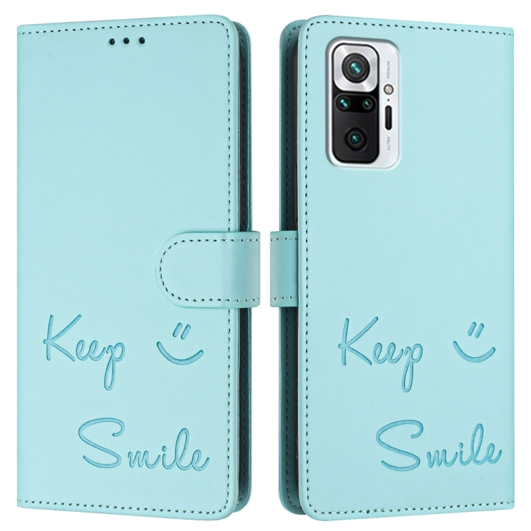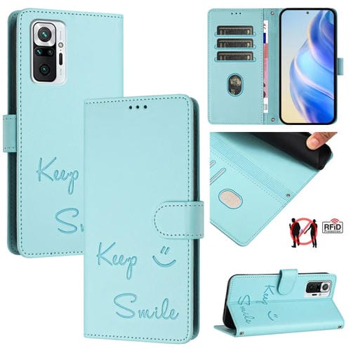 Funda de Cuero Rfid con Relieve Sonriente para Redmi Note 10 Pro/Note 10 Pro Max (Verde Menta)
