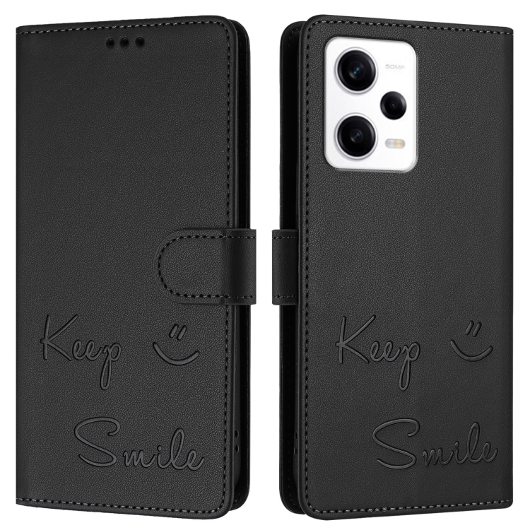 Funda de Cuero Rfid con Relieve Sonriente para Redmi Note 12 Pro+ 5G Global/India (Negra)